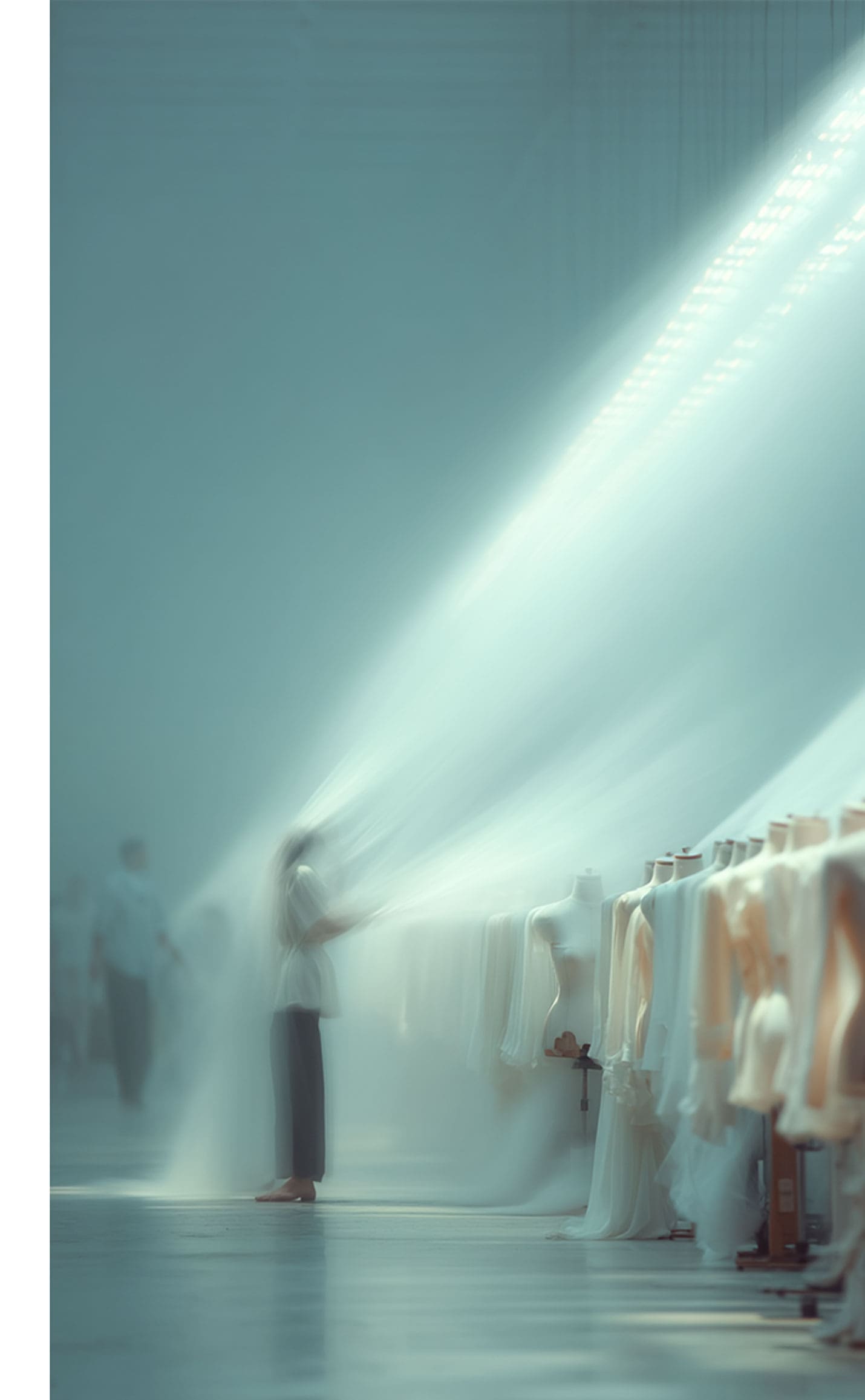 ELDORでは、皇室の縫製を担当した熟練の縫製士による”丸縫い”によって、最高品質に一貫性を持ち芸術的価値を高めるガーメントに仕上げています。縫製は糸の調子やスピード、絶妙な手技により完成度が大きく異なる最終的かつ重要な仕上げです。近年の縫製工場では低コストでの量産に合わせ、新人も含めて複数人で縫製するため部分別に仕上がりが異なり、完成したプロダクトは技術と品質の一貫性を保つことができません。